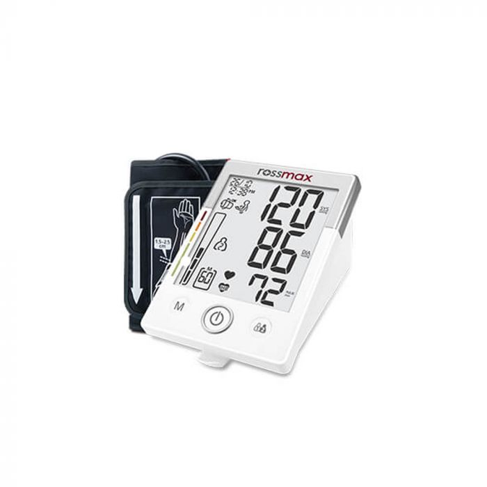 فشارسنج رزمکس (Rossmax) مدل «MW701F» فشار سنجی دیجیتالی و از نوع بازویی می باشد. این دستگاه دارای ویژگی هایی مانند حسگر تشخیص ثابت بودن بدن ، نمایشگر خطر فشار بالا و آشکارساز نامنظم بودن ضربان قلب می باشد. به منظور اندازه گیری با دقت فشار خون ، بدن باید در وضعیت ثابت باشد. این فشار سنج مجهز به سیستم تشخیص حرکت نیز می باشد.