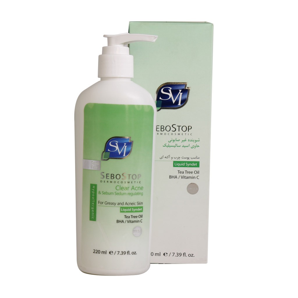 پن مایع پاک کننده Sebo Stop پاک کننده غیر صابونی که سازگار با PH طبیعی پوست فرموله شده است. این فرآورده بسیار موثر برای کمک به درمان آکنه و چربی پوست و جوش های سر سیاه بوده و برای پیشگیری از به وجود آمدن آکنه بسیار مفید است.